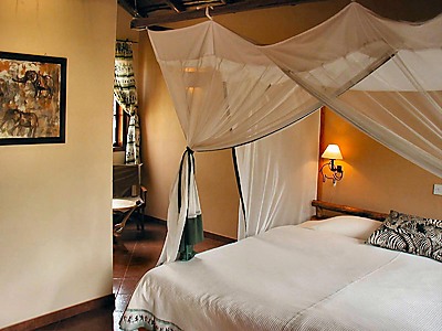 There are 21 spacious comfortable rooms with en-suite bathrooms and verandahs, all on ground floor level. Like the main building all rooms are decorated tastefully in African style with carefully selected materials and light management.