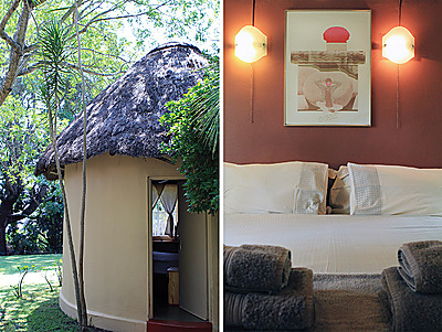 *Accommodation is provided in traditional Rondavels (round thatched rooms), Family units and neat wooden sleeper Cabins, spread throughout the expansive tropical gardens. The swimming pool and a large social braai are available for use by our guests.