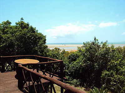 The chalets have a magnificent view across the beach to the distant islands of the Bazaruto Archipelago.