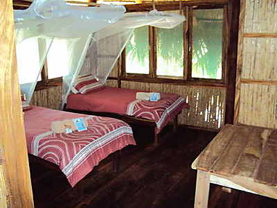 6/8 bed chalets and one large 28 bed bungalow built on stilts two metres above the ground. The tops of the local thatched roofs leave a space for air circulation making a cool and pleasant dwelling.T