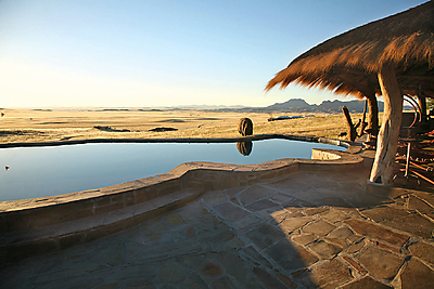 Rostock Ritz Desert Lodge consists of African-style bungalows aesthetically integrated into the landscape. A gorgeous pool and 20 rooms with en-suite facilities and own terrace offer unlimited views across the Namib desert. Campsite also available.