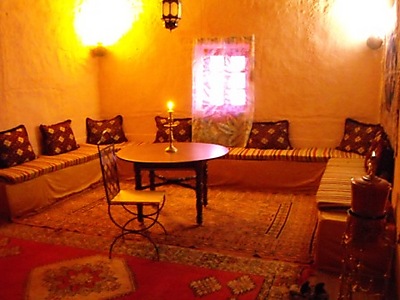 in 2 Kms from Mérzouga situated the Riad El Filalia...a nice House from the South and with manys of colors...there is4 bigs rooms with air conditionnel...one single and 3 double.the rooms give a panoramical view from the windows for the high dunes of Mérzouga..