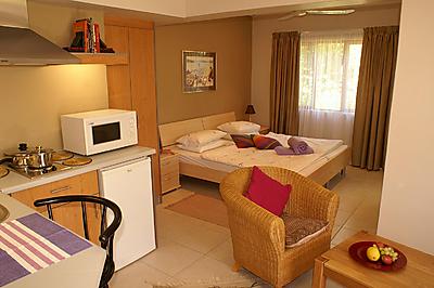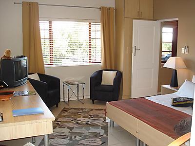 The Apartments offer three spacious, fully equipped self-catering apartments with an optional scrumptious breakfast on request. All the large units in the Guesthouse have a TV with decoder, fans, fridge, electronic safe, chic furniture & luxury linen with coffee & tea provided. There is an enormous social balcony and small, sparkling pool, as well as off-street parking. E-mail, internet, fax and copier facilities are available upon request, and your welcoming hosts speak three languages: German, English and Afrikaans.